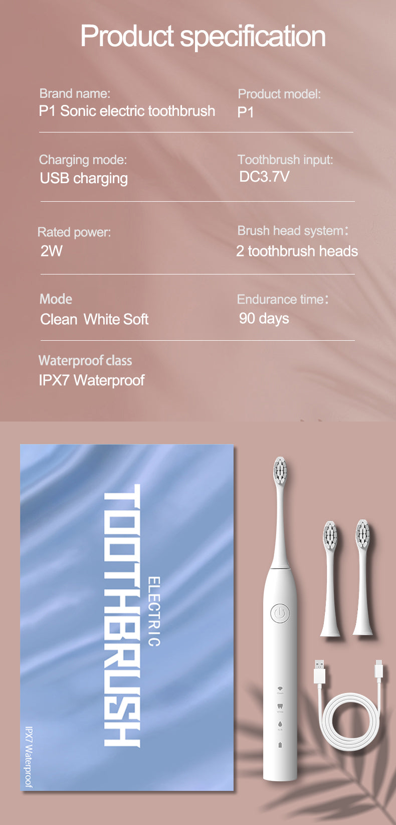 ✔ 2 Replacement Brush Heads (Ultra-Soft Bristles)
